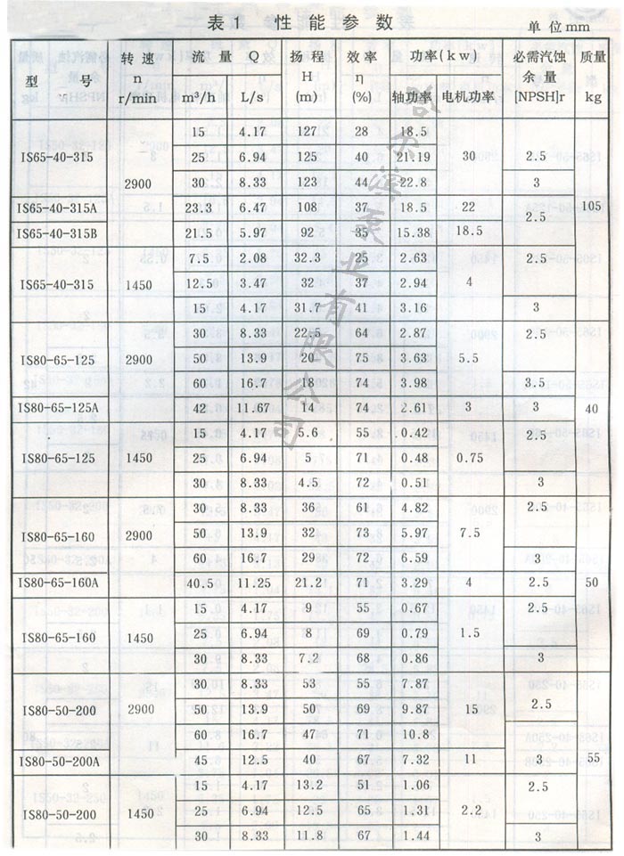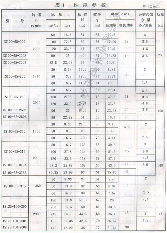 IS型泵系單級單吸(軸向吸入)離心泵,適用于工業(yè)和城市給水、排水,亦可用于農業(yè)排灌。供輸送清水和物理化學(xué)性質(zhì)類(lèi)似清水的其它液體之用,溫度不高于80%。